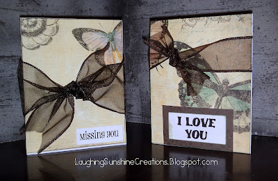 Nina challenged us to use up the leftovers of a paper collection. I had 3/4's of a sheet of my FAVE paper...Bo Bunny's Gabrielle. I had just enough to make these two cards. You really can't add much more to this beautiful paper!!